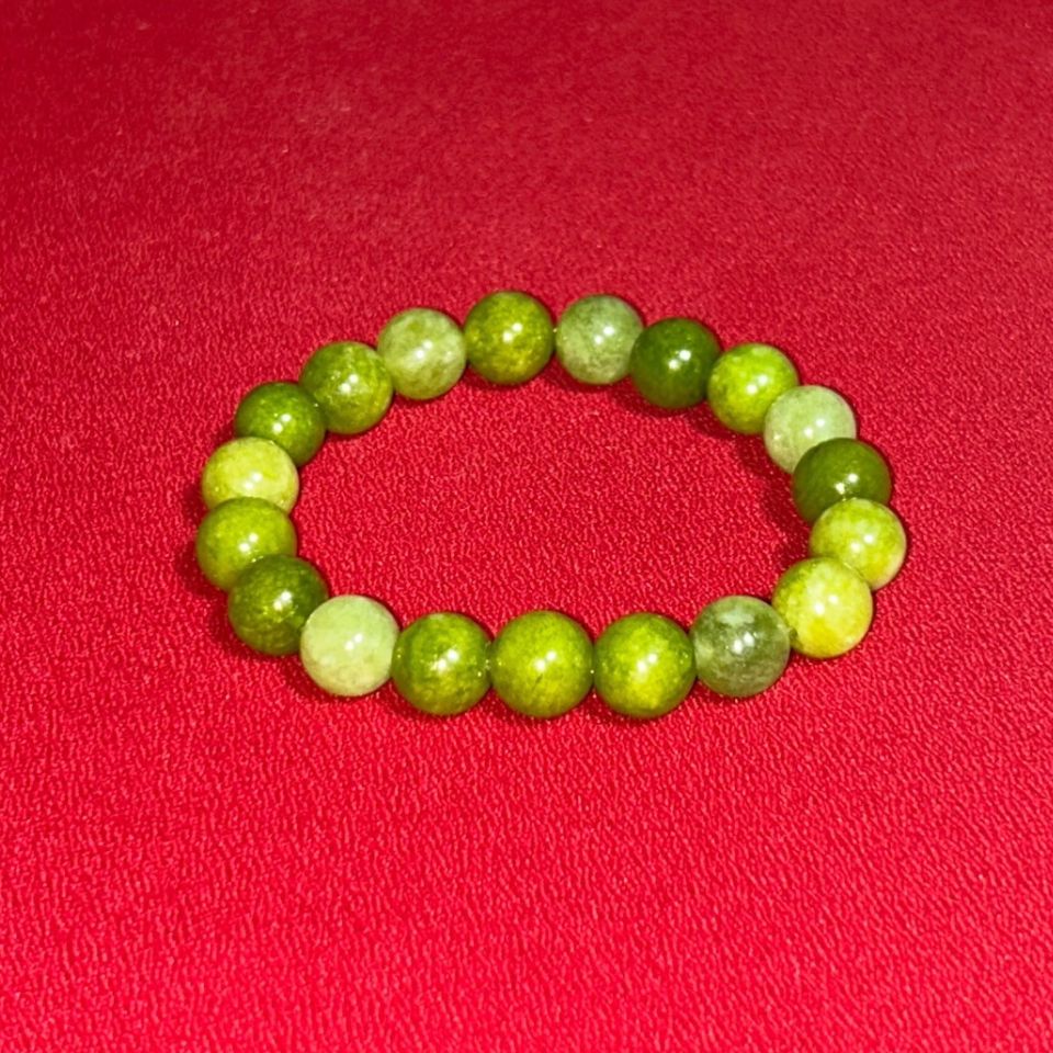 このブレスレットは、純粋なペリドットのエネルギーを最大限に引き出すために、単独で使用しています。ペリドットは、古くから「太陽の石」として崇められ、厄除けやネガティブな感情の浄化に用いられてきました。持ち主の心を明るく照らし、希望やポジティブな思考を育むと言われています。また、知恵と慈愛を象徴し、人間関係における調和を促し、幸福をもたらすとも信じられています。その鮮やかな緑色は、見る人の心に安らぎと活力を与え、身につけるだけで気分が明るくなるでしょう。