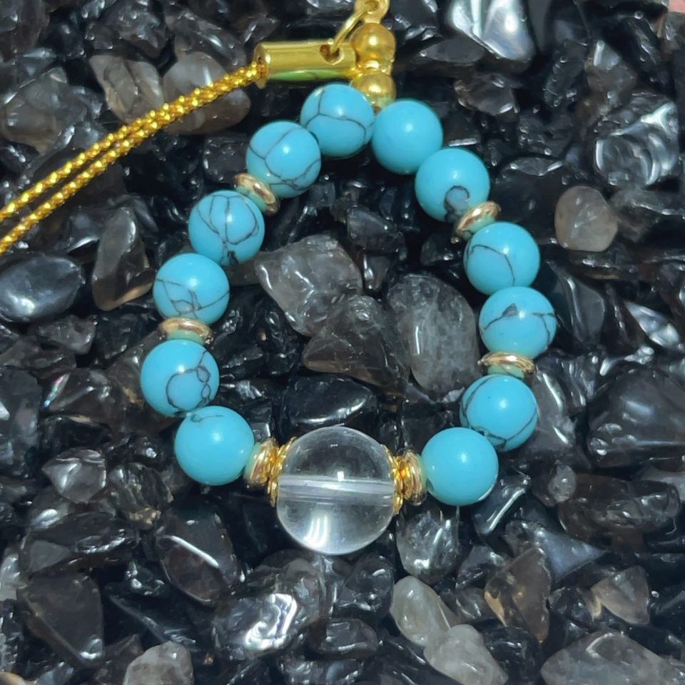 守護と幸運を紡ぐ:あなたの毎日を輝かせるお守り携帯ストラップ〜ターコイズ&水晶〜